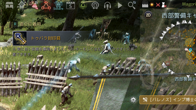 メイン依頼を進めていくと、装備を手に入れることがある。入手するとミニマップの左側に上記の表示が出るので、Rキーかマウスカーソルを合わせて左クリックしてすぐに装備しよう。Iキーでバッグを開いて装備することも出来る。
