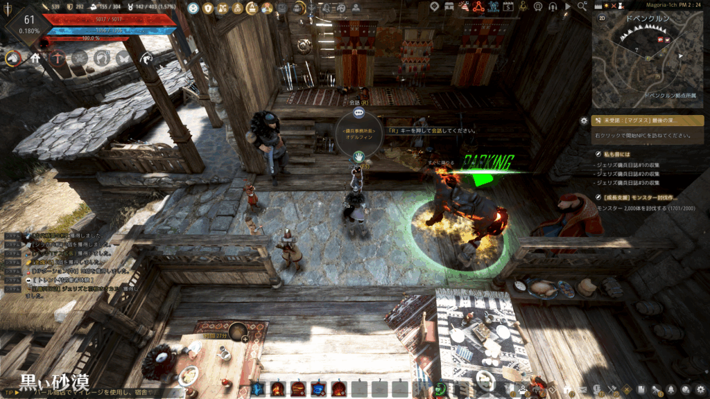 連続依頼の起点となるNPC「オデルフィン」はドベンクルンにいるのだが、「ドリガン」か「果てしない冬の山」のメイン依頼を進めていない家門では、地図上やNPC検索でもヒットしない。下図を参考に発見しよう。