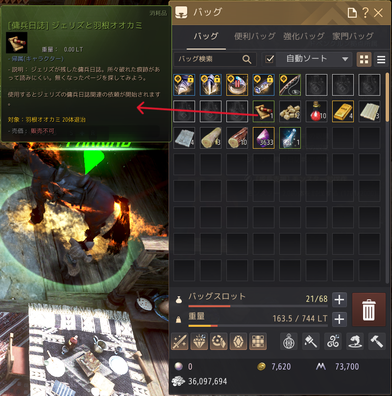 狩りをするにも、釣りをするにも、バッグマスに余裕があるほど効率は良くなるもの。Oキーで開く依頼ウィンドの推薦依頼タブ→[冒険支援]バッグ拡張!にある各依頼をこなせば、バッグマスを簡単に拡張できるのだが、一部分かりにくい依頼があるため、ここで解説したい。
