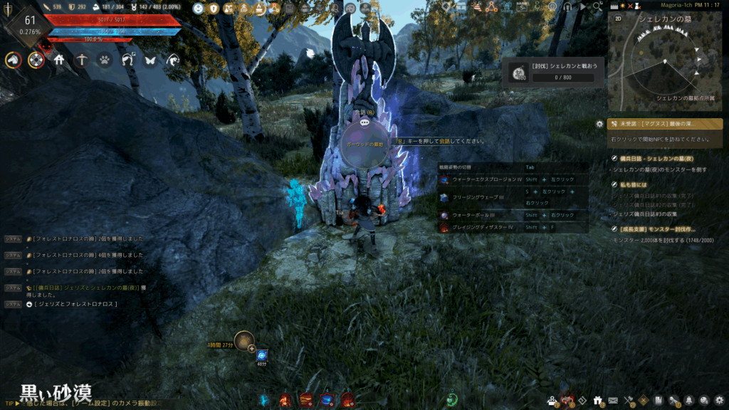 討伐後の完了対象NPCも敵陣の中央に居るため、停めた馬が攻撃されないように注意。完了時に新たな日誌を入手するので、同様に使用して進行しよう。