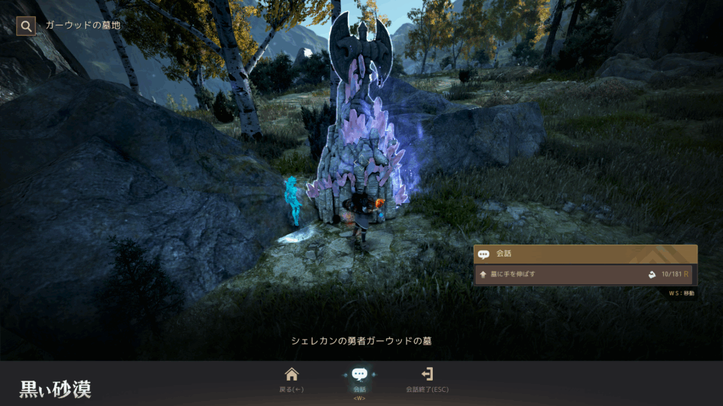 3冊目のシェレカンの墓(夜)は、目的地に行っても敵は全て消えている。近くに下図のようなオブジェクトがあるので、行動力10を消費して敵を呼び出す形になっている。